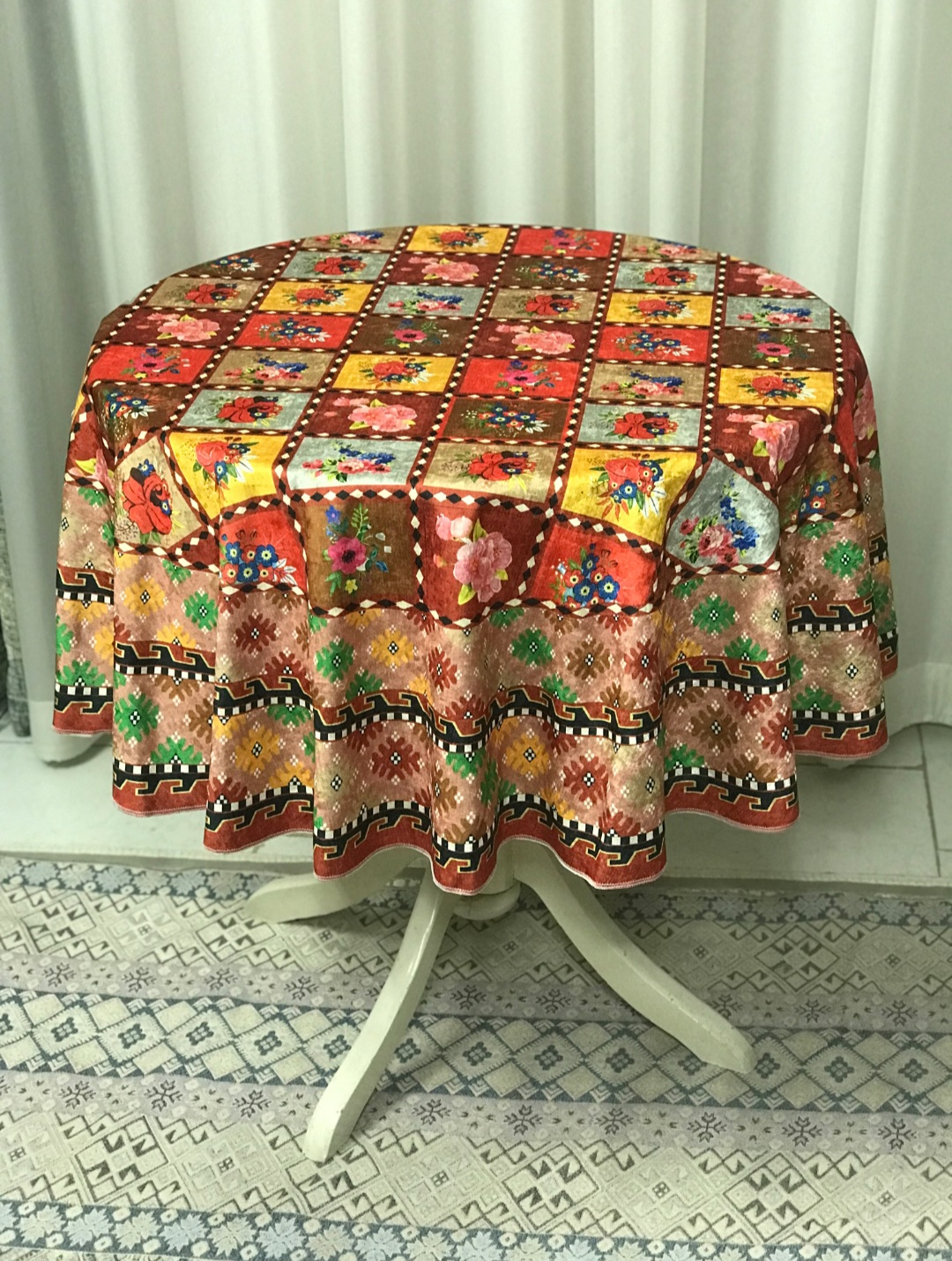 رومیزی گرد طرح چهل تیکه سنتی گل